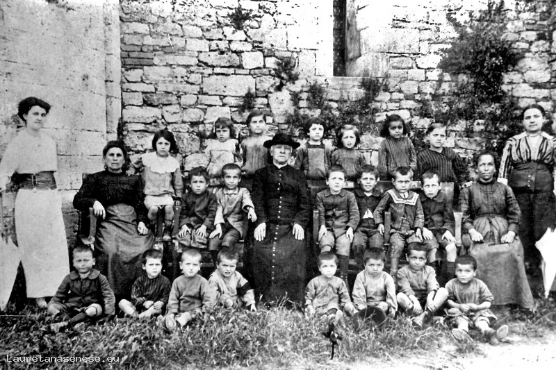 1910-1920 - I bambini dell'asilo parrocchiale dietro la Pieve di San Vittore Asciano