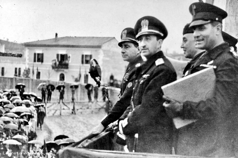 In quest'immagine Starace parla agli ascianesi, riuniti all'interno dello Stadio Marconi, dalla terrazza della nuova Casa del Fascio.