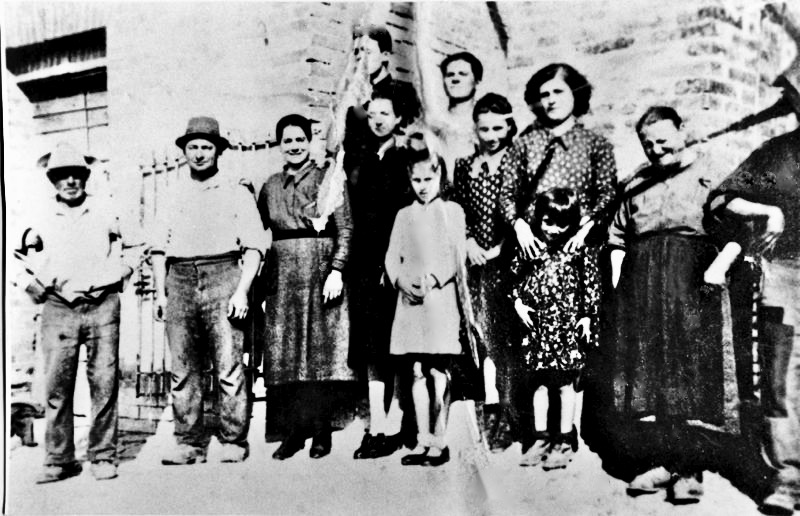 Nella foto il gruppo familiare dei Magini, ritratto alla Casanova della Fattoria Bargagli di Montemori. Nel 1938 l'originale nucleo familiare composto da 25 persone si era già frammentato.