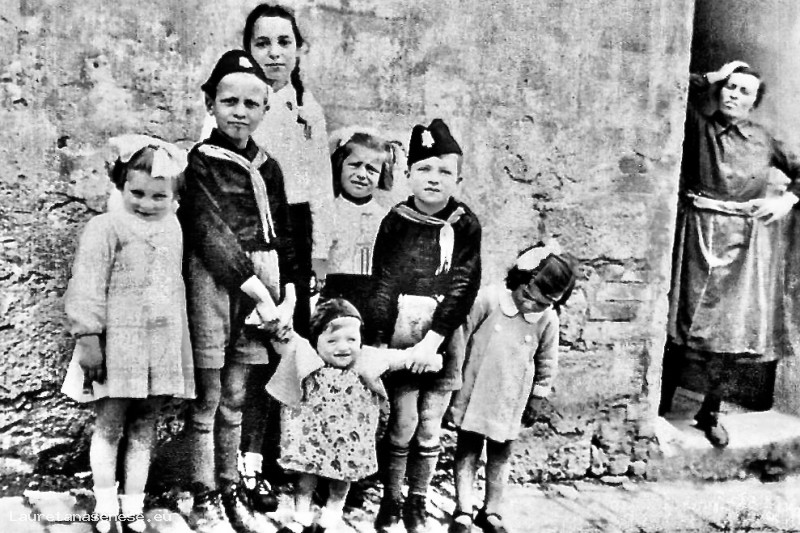 Foto inusuale che ritrae un gruppo di bambini, controllati a distanza da una mamma.
