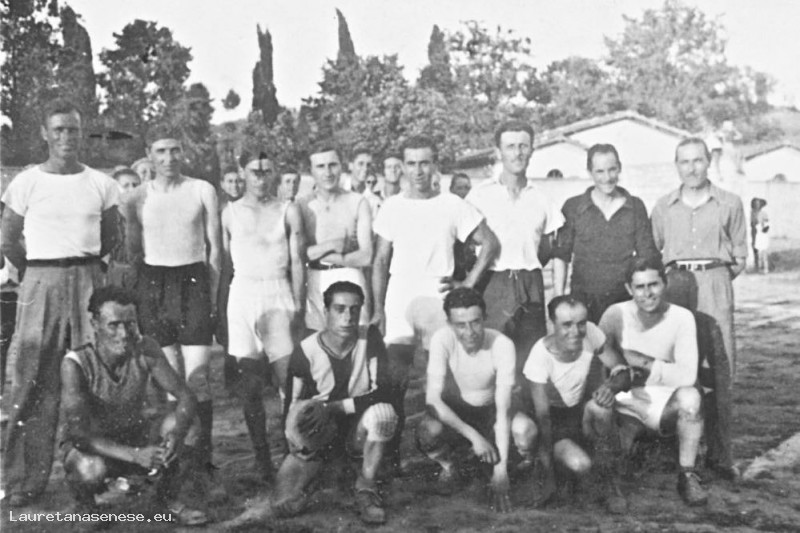 I due fratelli Cantini, Atos il primo in piedi a sinistra e Aldo il secondo da destra accovacciato.