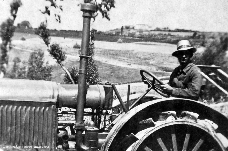 1942 - il Barbi su un grosso trattore con ruote a lame Asciano