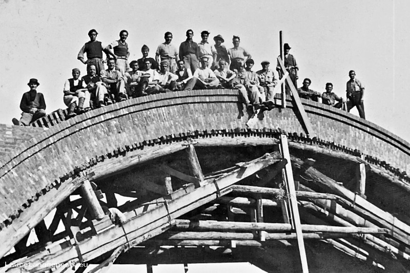 1945 - Si ricostruisce un ponte distrutto durante la guerra Asciano