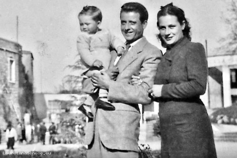 Attilio Giannettoni si è fatto fotografare con la moglie Vilma e il figlioletto, da poco nato, ai giardini pubblici quando ancora non c'erano i grandi abeti.
