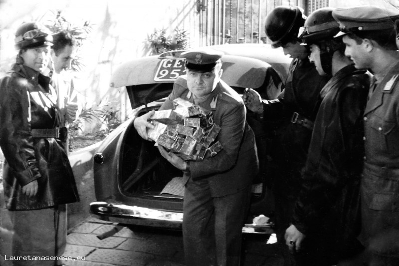 1954 - Il finanziere Ivo Palazzi sequestra sigarette di contrabbando Asciano