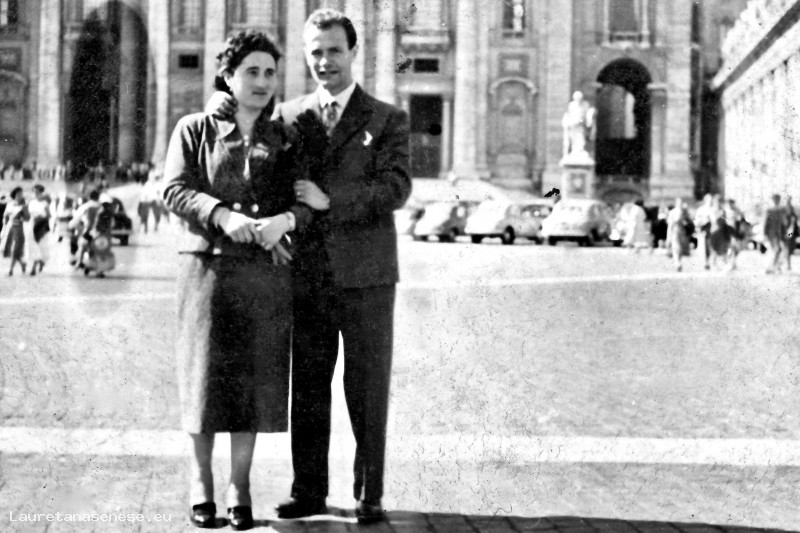 Silvano Trapassi e Silvia Lucatti in viaggio di nozze, fotografati in piazza San Pietro.