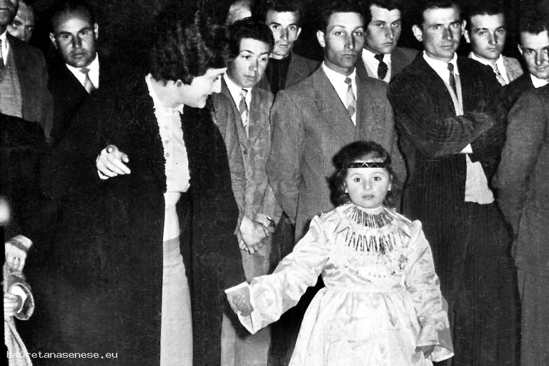 Questa foto è speciale, non tanto per l'immagine di una piccola Beatrice di 5 anni per mano a mamma Maria Luisa, ma il folto gruppo di uomini sullo sfondo, fra quali si riconosce un giovanissimo Ercolino ?.