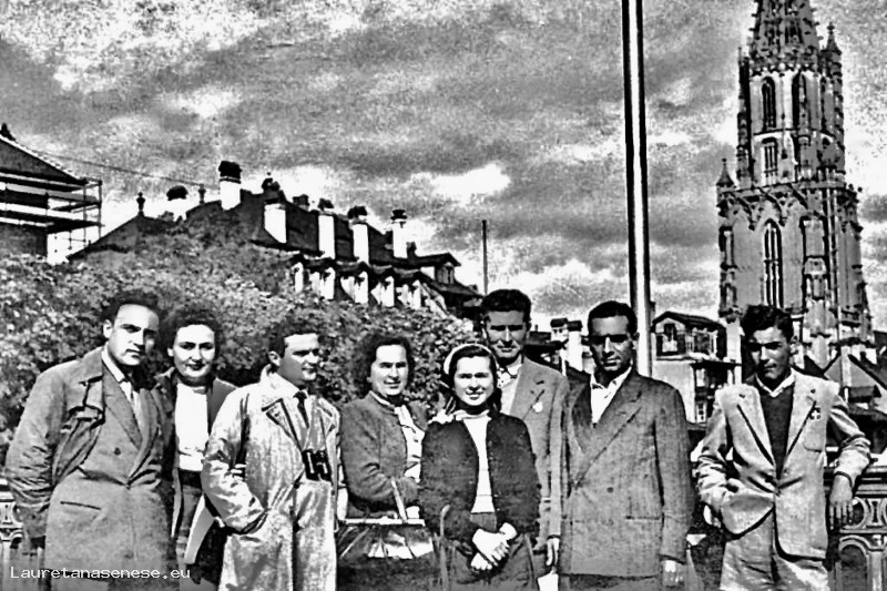 Gruppo di amici ascianesi in gita nella vicina Svizzera, foto ricordo su un ponte.
