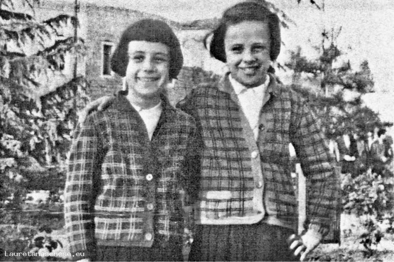 Vecchio ritratto delle figlie: Marisa e Miretta, del muratore Cantini ? ai giardini pubblici, vestite uguali come usava allora.