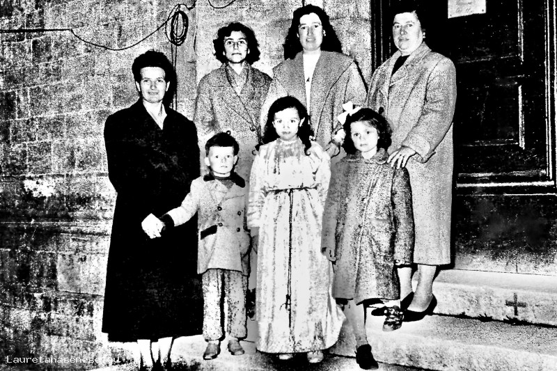 Prima della processione del Venerdì Santo, Tutta la prole della famiglia Sani è immortalata con la mamma e le donne della famiglia di Liberato Marignani, vicine e amiche di famiglia.
