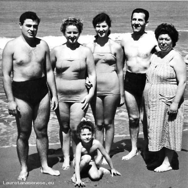 1957 - Gruppo di bagnanti sulla spiaggia di San Vincenzo Asciano