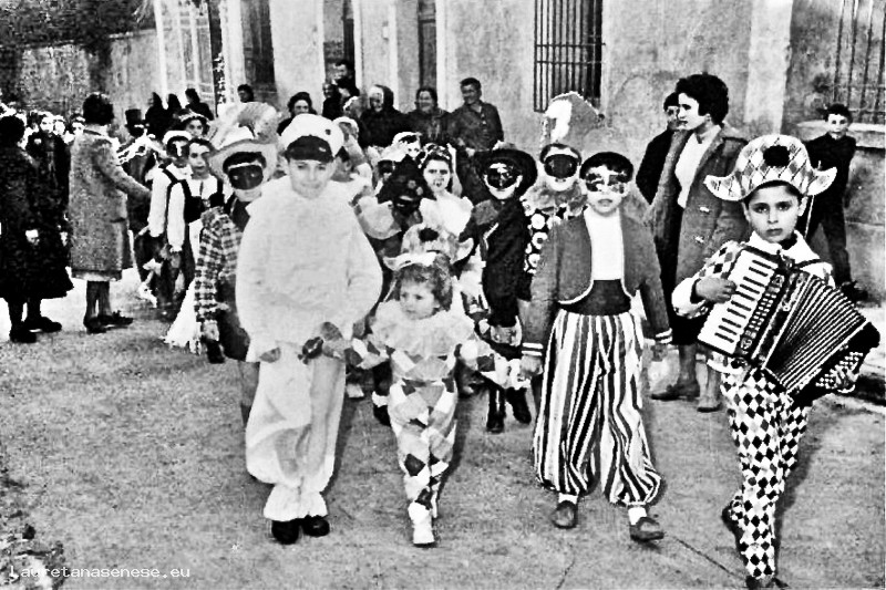 1958 - Carnevale dei bambini che escono dalle scuole vecchie Asciano