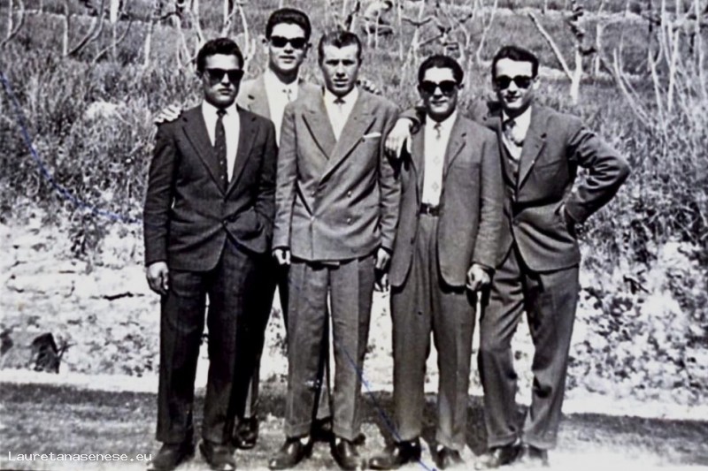 Foto di un gruppo di amici, scattata presumibilmente lungo "La vianova", oggi viale A. Gramsci.