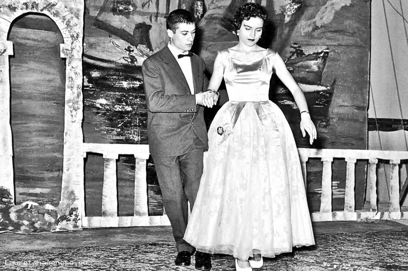 Due bellissimi giovani locali recitano insieme in una commedia brillante, cantata e ballata sul palcoscenico del Cinema Parrocchiale.