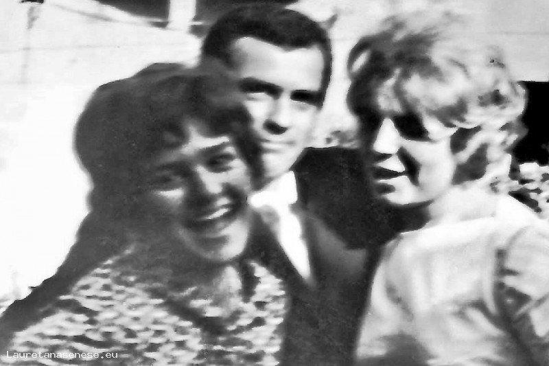 si fanno fotografare con l'amica Giovanna Cini, appena usciti di chiesa.