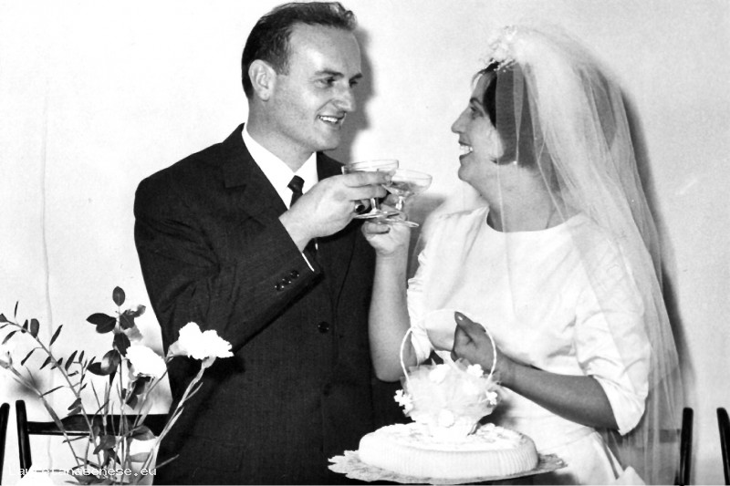 1963, giovedì 5 Settembre - Mario e Elvia al taglio della torta Asciano