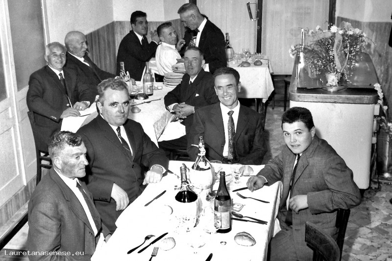 - In piedi in livrea bianca e fiocchino, Attilio Amidei che serve le pietanze.