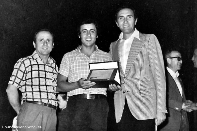 Un giovane Pippo Baudo conegna una targa di merito alla locale Azienda di Carpenteria Metallica: 2MA.