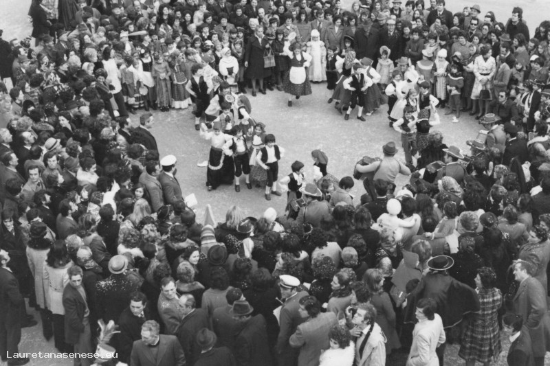 Fra i bambini che ballano al suono delle fisarmoniche, si riconoscono: Filippo Marcocci, Francesco Francini, Simona Gallorini e Giuliana Betti.