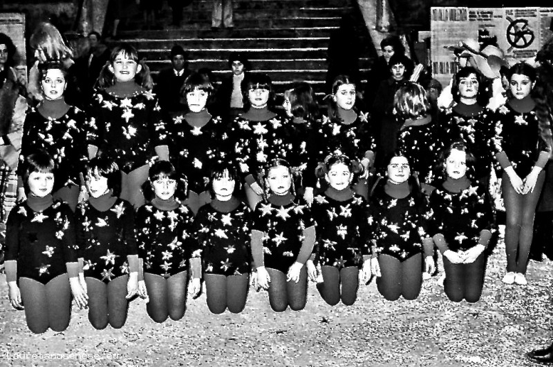 Le bambine che partecipano ad un saggio di ginnastica organizzato dall'insegnante Marzia Giulianini , partendo da sinistra in alto: