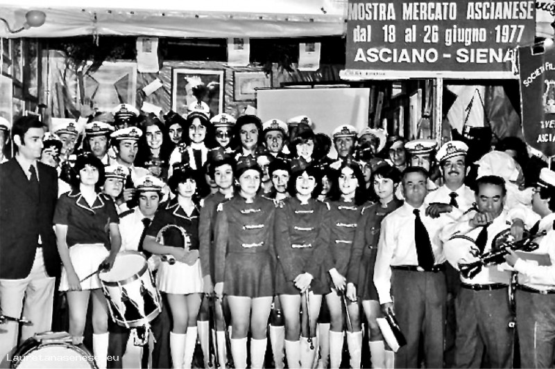 1977, Sabato 18 Giugno - X^ Mostra Mercato Ascianese: La Banda dopo la sfilata inaugurale Asciano