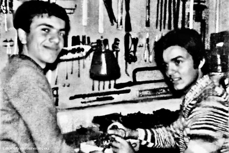 Elio Gorelli, detto Mangia corrente e Fabio Guerrini quando lavoravano come apprendisti nel negozio di elettricista di Marino Romi.