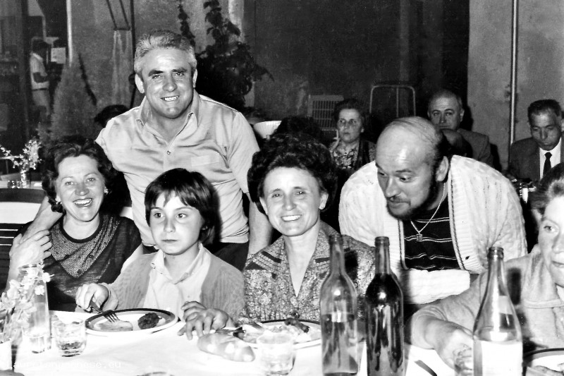 Immagine di un gruppo allegramente a tavola. Da sinistra: