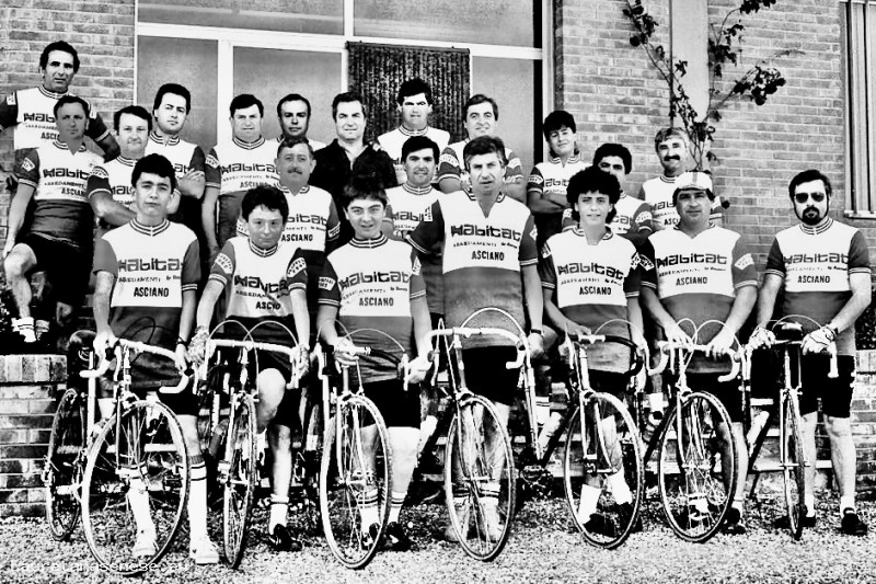 Da sinistra: Sirio Caliani Fabrizio Agnelli Elvio Angelini Alessandro Palazzi Enrico Roncucci, lo sponsor Mario Bonari Silvano Fattori Renato Farfarini Luciano Magini Claudio Barbagli Gianni Farfarini Antonio Comanducci Massimo Foglietta Guido Rosini Francesco Bindi Andrea Ciacci Mario Giannettoni Antonio Roncucci Claudio Soldati Marcello Pianigiani
