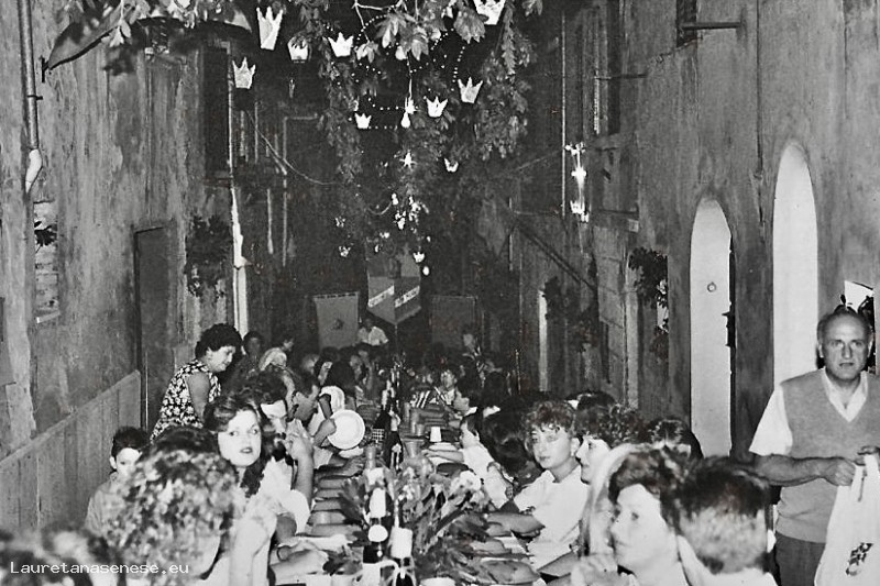 1985 - Cena propiziatoria della Corona, i partecipanti al centro della tavolata Asciano