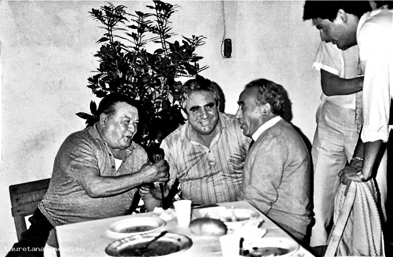 Sergio Fagnani detto Bazzino con il microfono in mano, Giancarlo Giannetti detto Lallo, Romano Giustarini detto Romanino.