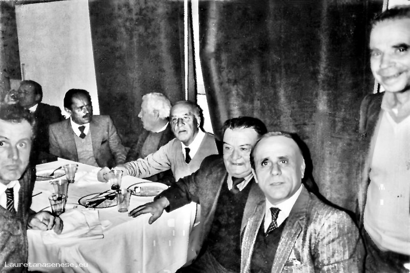 A seguito dei riconoscimenti ricevuti per la sua lunga attività di trombettista, Bazzino festeggia a tavola con gli amici: