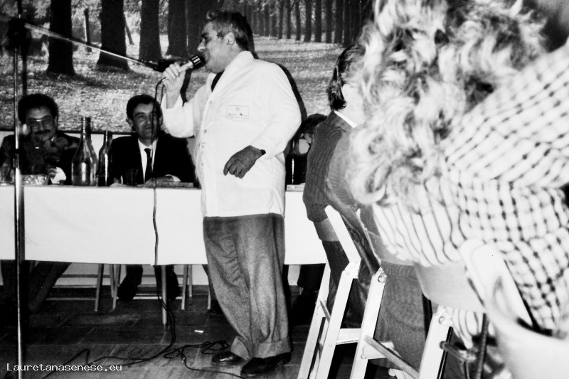 Giancarlo Giannetti, uno dei più anziani membri della locale Filarmonica, intrattiene i partecipanti al tradizionale pranzo di Santa Cecila, con le sue brillanti e pepate battute estemporanee.