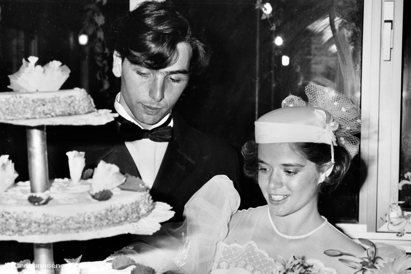 si apprestano al tradizionale tglio della torta nuziale.
