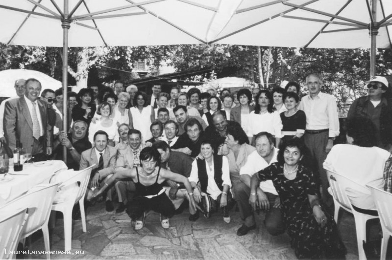 Foto di tanti ascianesi conosciuti, tutti nati nel 1947, raccolti nel giadino del Ristorante del Cannelli.