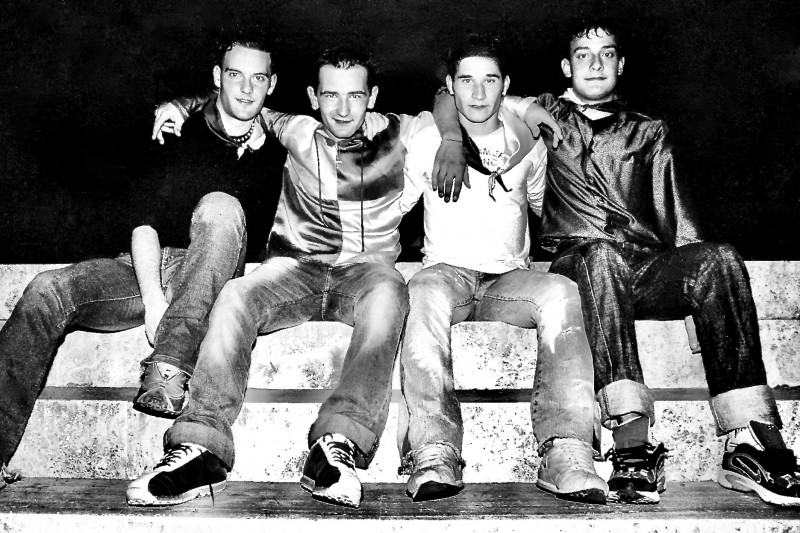 Una sera quattro grandi amici sulle scale di piazza Garibaldi, da sinistra: