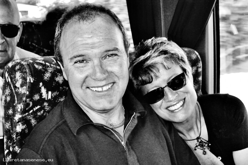 Luciano Duchini con la moglie Marilena Marcocci, durante uno dei trasferimenti in pullman.