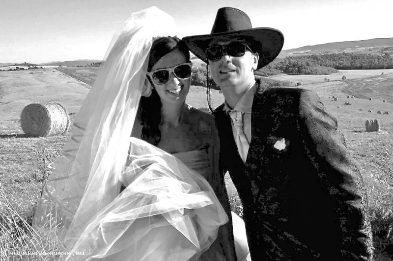 Gli sposi in mezzo alle Crete di Leonina, prima del pranzo di nozze: