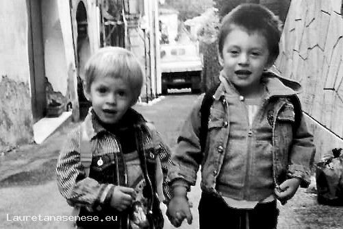 che tenendosi per mano, vanno alla scuola materna vicina a casa loro.