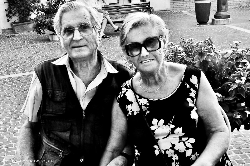 Bellissimo ritratto di Marcello Bazzotti, nato il 12 Aprile 1938 e la moglie Elena, seduti ad un Bar a Fano, nelle Marche.