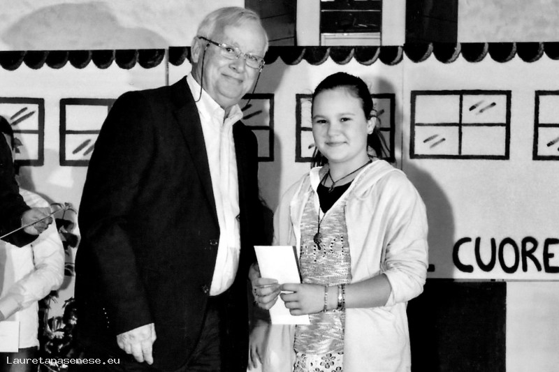 Il Presidente Vincenzo Cassioli premia Giada, un'alunna delle Scuole Medie locali.