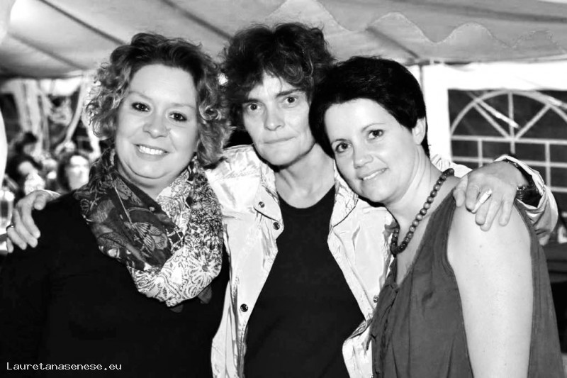 Tre giovani contradaiole al Prato Village, ma quella in mezzo non è del Piazza?