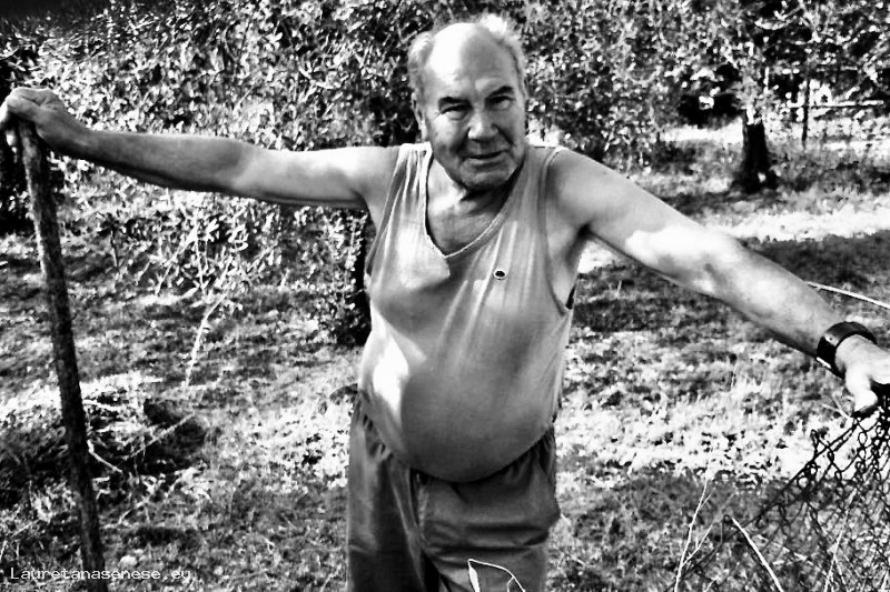 GIORGIO MALFETTI di 76 anni, dopo una vita passata a fare lo scalpellino, passa tutto il suo tempo libero da pensionato a curare un piccolo oliveto che tiene meglio di un giardino di casa. Una sana abitudine che lo ha a lungo mantenuto in salute, continuando a sentirsi una persona attiva e utile alla collettività. Bisognerebbe domandargli cosa risponderebbe a quei, giovani e meno giovani, che oggi affermano di non far niente perché manca il lavoro.