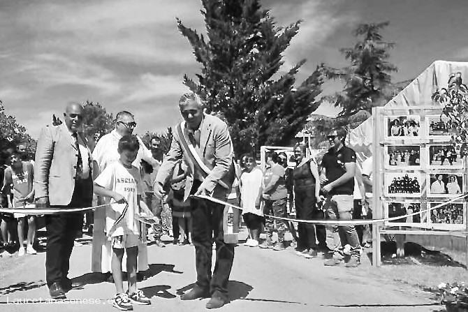 Il taglio del nastro tricolore è sostenuto da un bambino del quale non si conosce il nome.