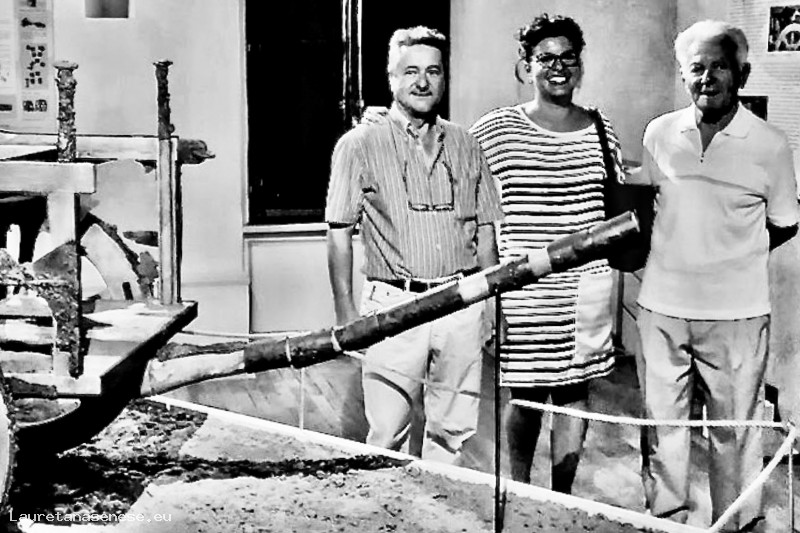 I due Boccini: Giorgio a sinistra e Bruno a destra dell'Assessore Lucia Angelini il giorno dell'inaugurazione della sala dedicata al carro etrusco ricostruito dopo lunghi studi di approfondimento da parte della Soprintendenza Archeologica.