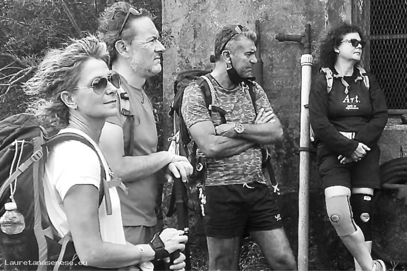 Foto che ritrae un gruppo di amici durante una sosta escursinistica.