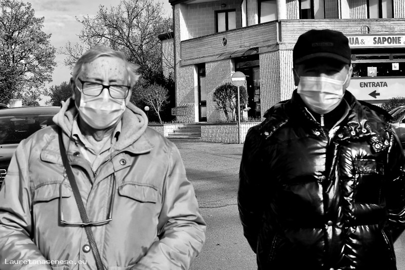 Due amici appassionati di calcio e tifosi della Juventus, scoperti a discutere di calcio, nonostante le mascherine. Nonostante la difficoltà di parlare, hanno espresso la certezza che anche in questo campionato saranno detinati a festeggiare la vittoria. Speriamo che qualcuno non "gli metta i bastoni fra le ruote".