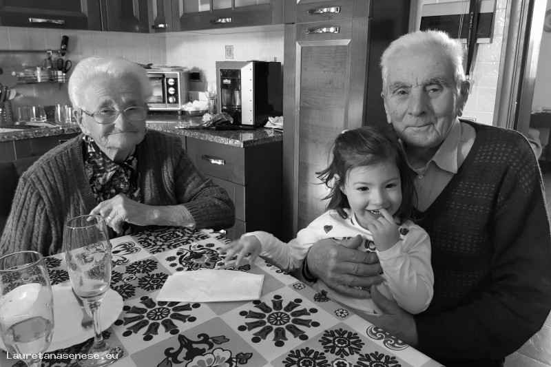 visibilmente felici di festeggiare assieme alla bisnipote Giada, la primogenita di Andrea Tommasi, unico nipote cresciuto in casa loro.