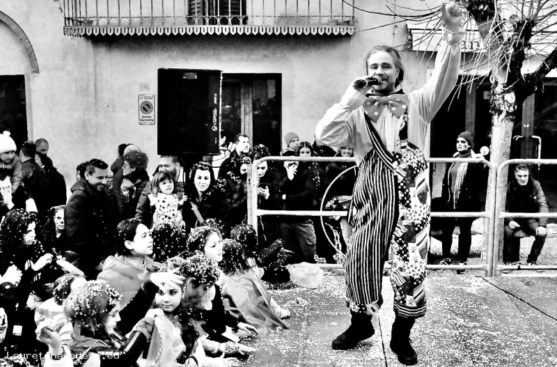 Giacomo Equatori, intrattiene la piazza nella prima domenica del Carnevale di Meio.