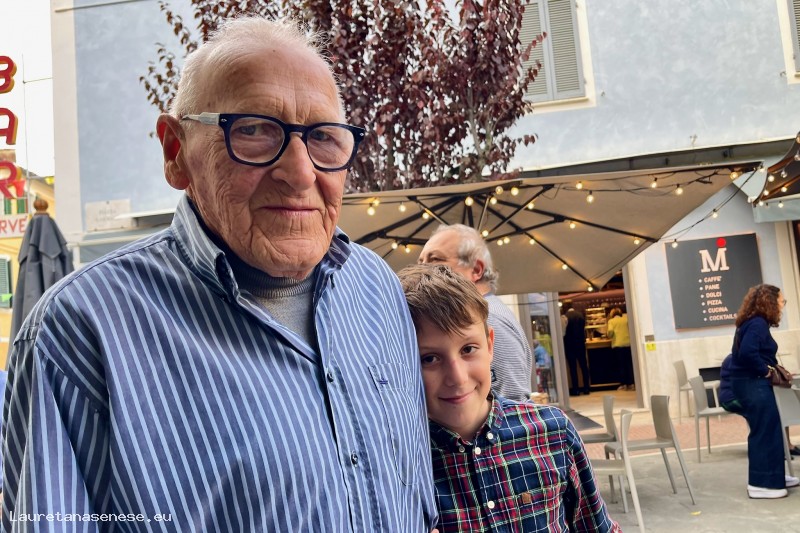 Nonno Giuliani alla Festa Contadina in compagnia del nipotino, figlio di Petula Bernini