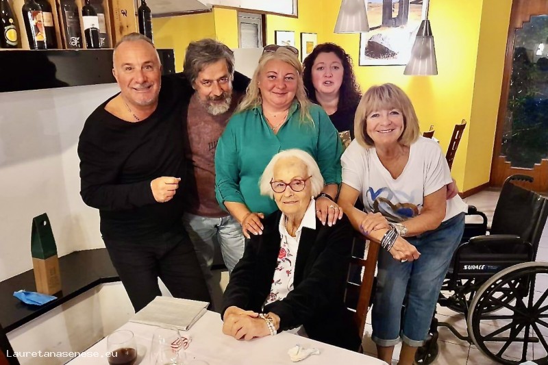 Loriana, vedova di Ampelio Baldetti, compleci i suoi figli, ha festeggiato il suo compleanno al Ristorante La Mencia, invitando tutte le persone che quotidianamente le sono vicine.